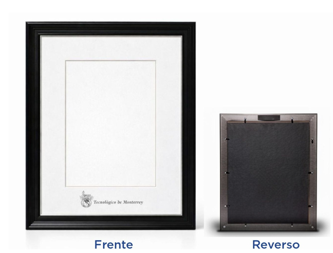Porta titulo hecho con un marco de polipropileno en acabado color negro.